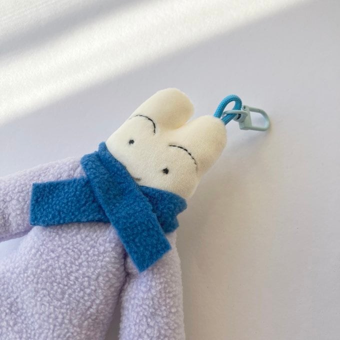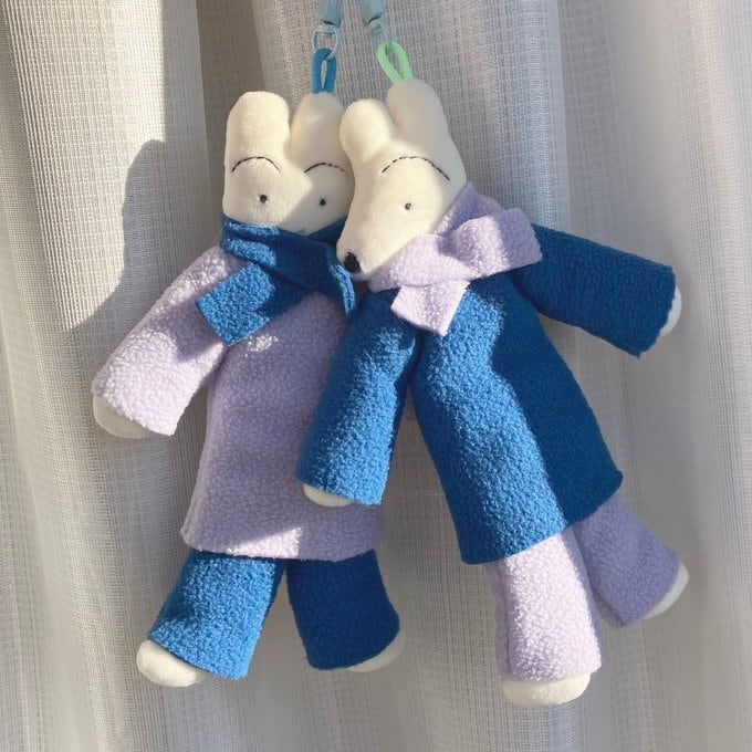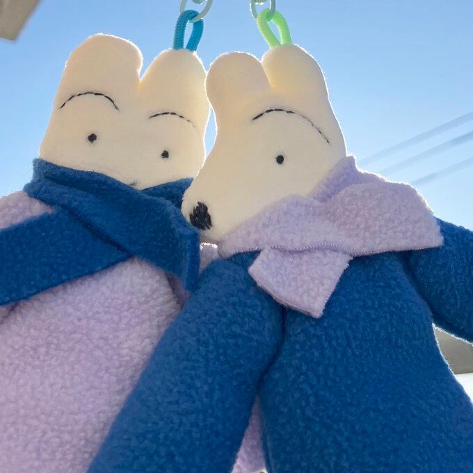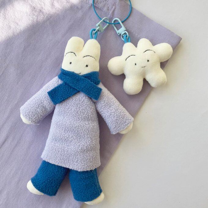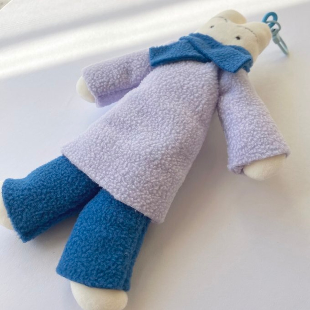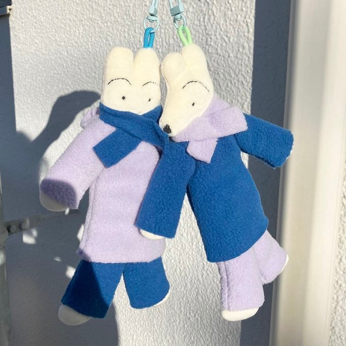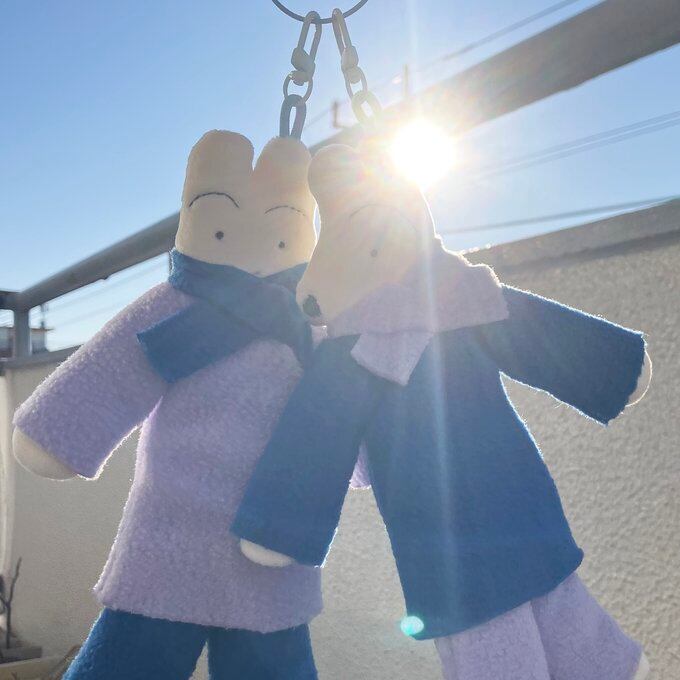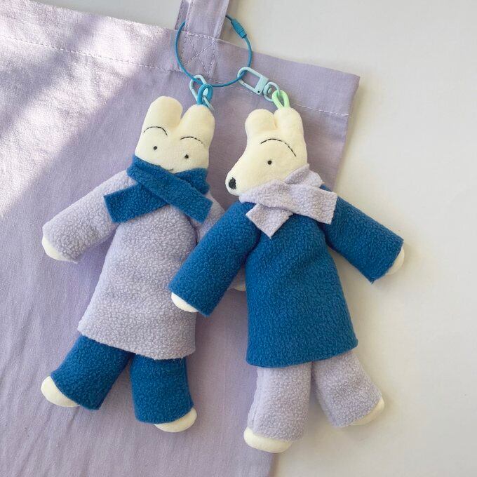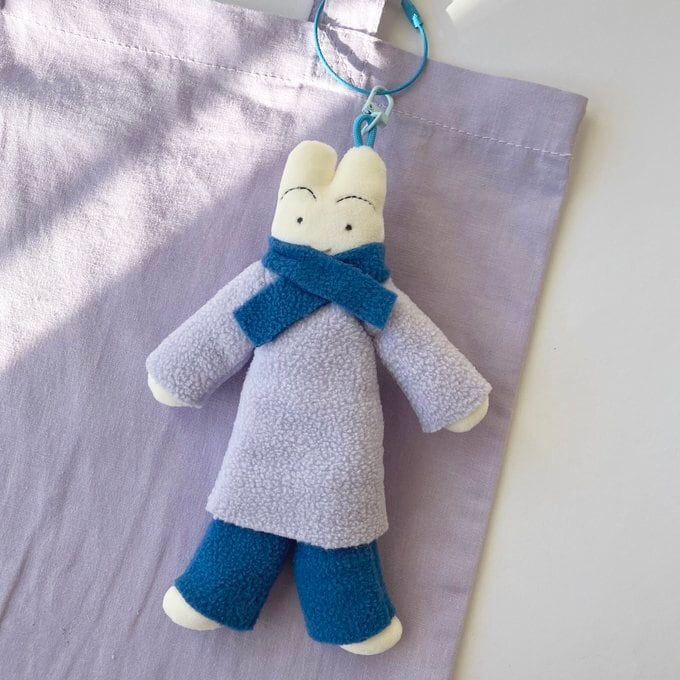 寒い冬にコートとマフラーで過ごす住人Bのぬいぐるみ(キーホルダー)です。